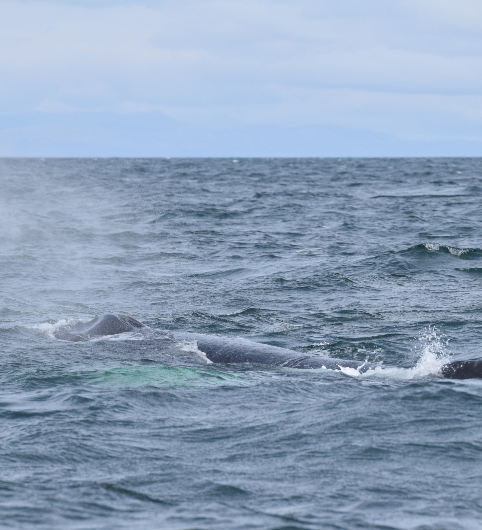 14:00 - We were once again blessed with beautiful, sunny weather as we headed out into the bay this afternoon. After about 15 minutes of sailing, a small pod of 3 harbour porpoises swam straight toward our boat, surfacing twice before diving again. We stopped to see where they might reappear, but true to their shy reputation, they quickly swam away. We carried on in hopes of more encounters, and soon a minke whale surfaced right beside us. We stopped and watched as it came up a few more times, showing its pointy snout when breaking the water, before it too decided to move on. Not long after, another minke whale appeared. We waited to see if it would resurface, but this individual seemed just as shy, so we continued our journey. Eventually, we reached a large feeding area where Northern Gannets were plunge-diving everywhere - a clear sign of abundant fish in the water. It wasn’t just the seabirds feasting: 2 humpback whales appeared and treated us to several dives, showing their beautiful big flukes. Then, two more humpbacks and two additional minke whales surfaced in the distance. We stayed in this lively area for quite some time, marveling at the abundance of life around us. Just before we left, the pair of humpbacks surfaced one last time right beside the boat - a breathtaking farewell. We returned to the harbour filled with joy from all these close encounters. What a truly unforgettable afternoon!