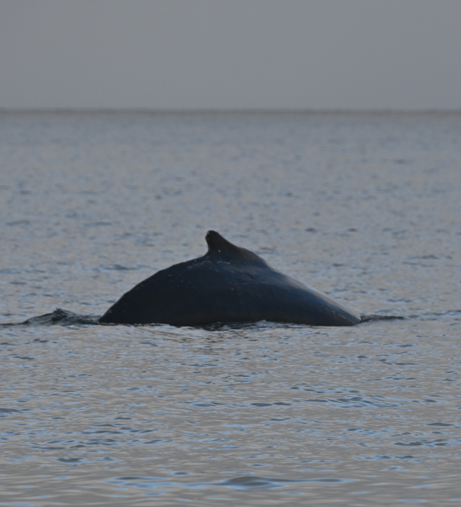 14:00 - With a mix of some overcast skies and drizzle, we bundled up and headed out. We noticed an abundance of fish still around the port, so decided to start by looking around some of our islands nearby. That was when we spotted the back of one minke whale. This individual was rather active and kept popping up all around us. It was amazing conditions as the water was very calm, allowing us to easily track where this individual surfaced. After a great show, we left this minke to it and continued on. That was when we spotted the blow of one humpback whale! They then gave us a beautiful fluke dive. It is always wonderful when we can see that classic humpback whale tail image, as they sometimes decide not to raise their fluke fully out of the water. The chilly air also allowed us to admire the impressive blow as this individual took a breath while surfacing. After multiple surface sequences, we decided to head further out and see if anyone else was out in the bay. We then spotted the blow of another humpback whale and went to investigate it. Unfortunately this individual was rather sneaky, and with the foggy conditions slipped from our sights. We did however, see an impressive rainbow which was great to admire while locating our humpback. With the dense fog, we decided to try our luck back closer to port. While we did see some seabirds, it appeared that our cetaceans had swam to other locations. As we drove back into port a second minke whale surprised us by appearing right in front of the boat! We had quite a lucky day regarding our minkes and it was great to see them so close! We were grateful to have had an excellent encounter with our minke whales and our humpback whale and it was time to head back to port to locate a nice hot chocolate.
