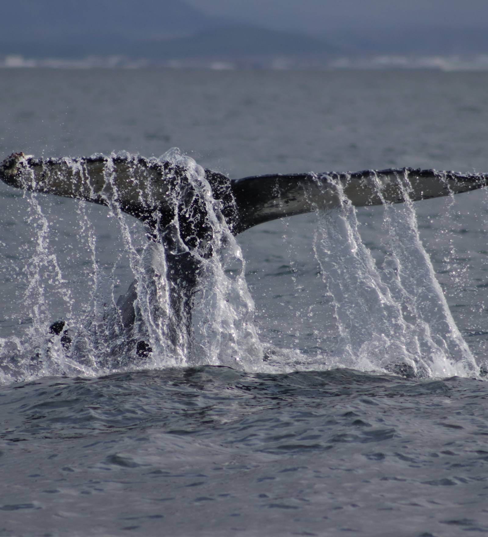 14:00 - We set out onto the smooth, calm bay under rays of sunshine beginning to break through the cloud cover. We had to sail quite far, but spotted our first blow ahead, followed by an elegant fluke dive. While we were waiting for this whale to surface again, a pod of 4-5 harbour porpoises headed toward us, treating us to a lovely sighting of this shy and elusive species. We then spotted not one, but 2 blows ahead belonging to a pair of humpback whales. They gave us some lovely fluke dives and we even got two tail-slaps from one of them! We stayed with this lovely pair for a good while, until we spotted some large splashes in the distance. We began heading in that direction, but since the activity had ceased, we instead headed for a blow a bit closer to us, also coming across 2-3 sneaky minke whales making brief appearances nearby. We then spotted our third humpback of the tour, this time an individual who treated us to some very close-up surfaces! We then turned out attention to a flock of birds that had become increasingly active, with some Northern gannets creating splashes via their signature plunge dives. Underneath this flock we had another 2-3 minkes whales surfacing every now and then, and we were able to see one of them incredibly close, a smaller individual, most likely a curious youngster. Unfortunately, as our time was running out, we had to make our way back towards the harbour, very happy with the sightings of the tour!